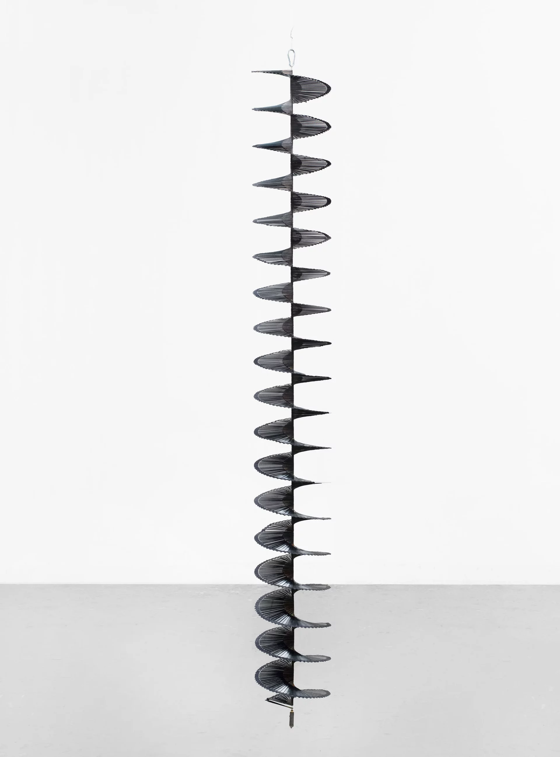 13. Gregor Hildebrandt, Die Wendeltreppe, 2017. Cut vinyl records, fabric, and metal, 213 × 27.5 × 27.5 cm (83 7/8 × 10 7/8 × 10 7/8 inches). © Gregor Hildebrandt.