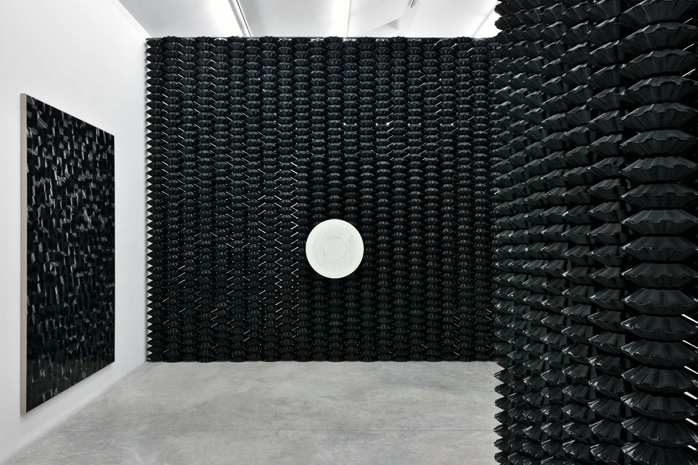 14. Gregor Hildebrandt, Konzentrische Wellen, 2017. Cut records and canvas on wood, 249 × 174 × 4 cm (98 × 68 1/2 × 1 5/8 inches). © Gregor Hildebrandt.