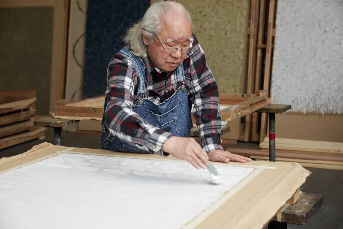 In his "Conjunction" series, pigment is pushed through hemp canvas from behind, forcing color to emerge as texture.