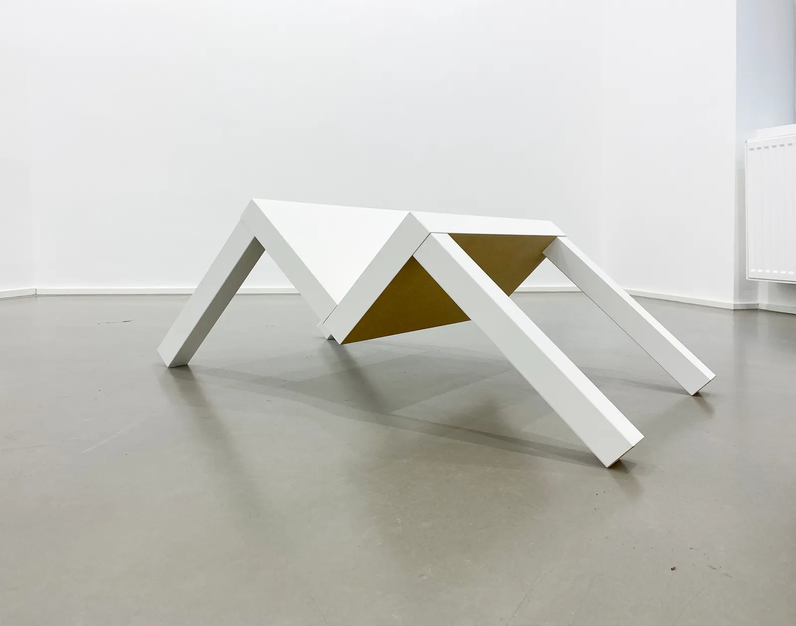 11. Jill Baroff, LACK Table #3 (on floor), 2019/2020. Pressed wood, hardboard, acrylic paint, glue, 36.5 × 99 × 55 cm (14 2/5 × 39 × 21 7/10 in). Artwork © Jill Baroff.