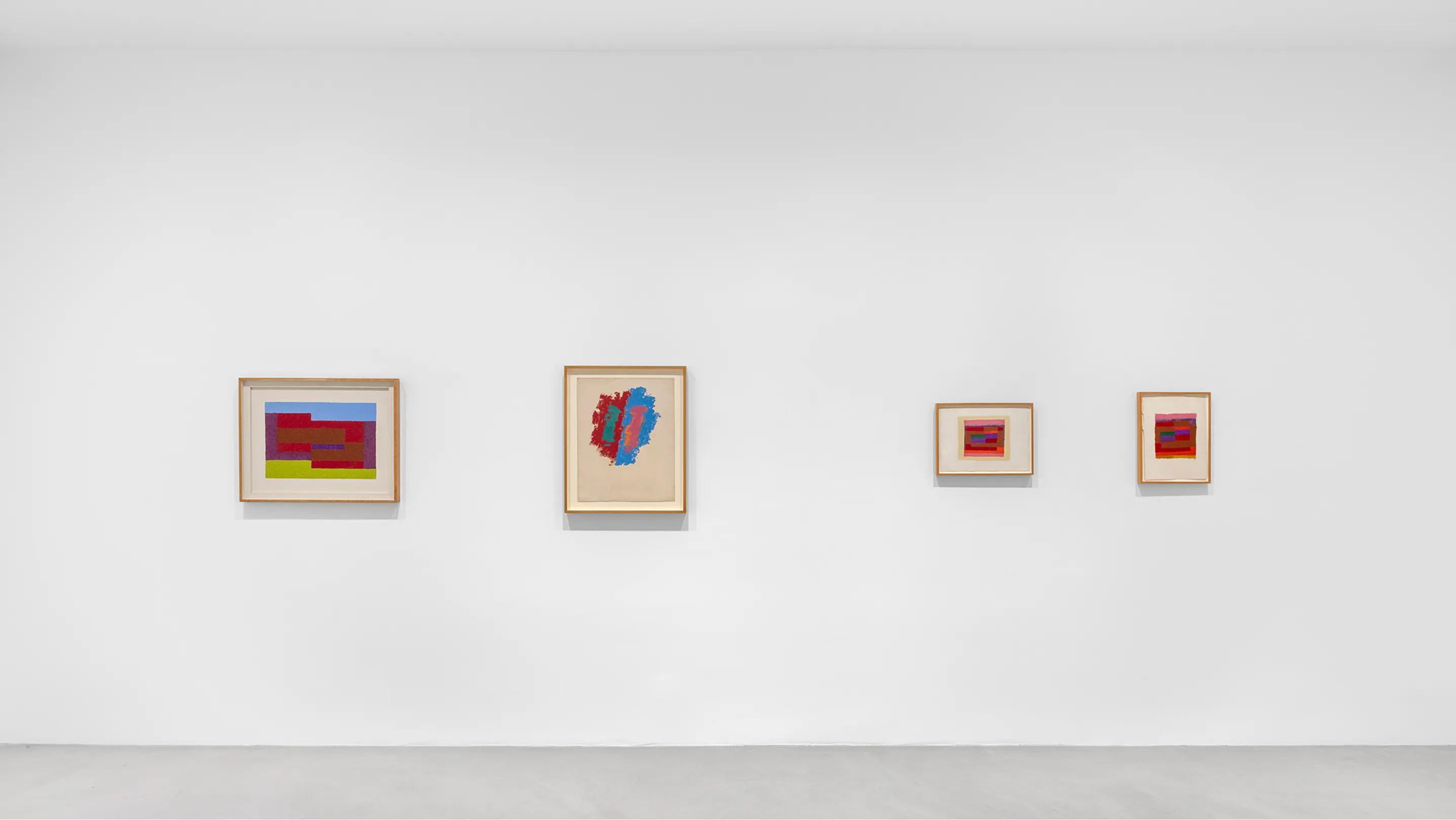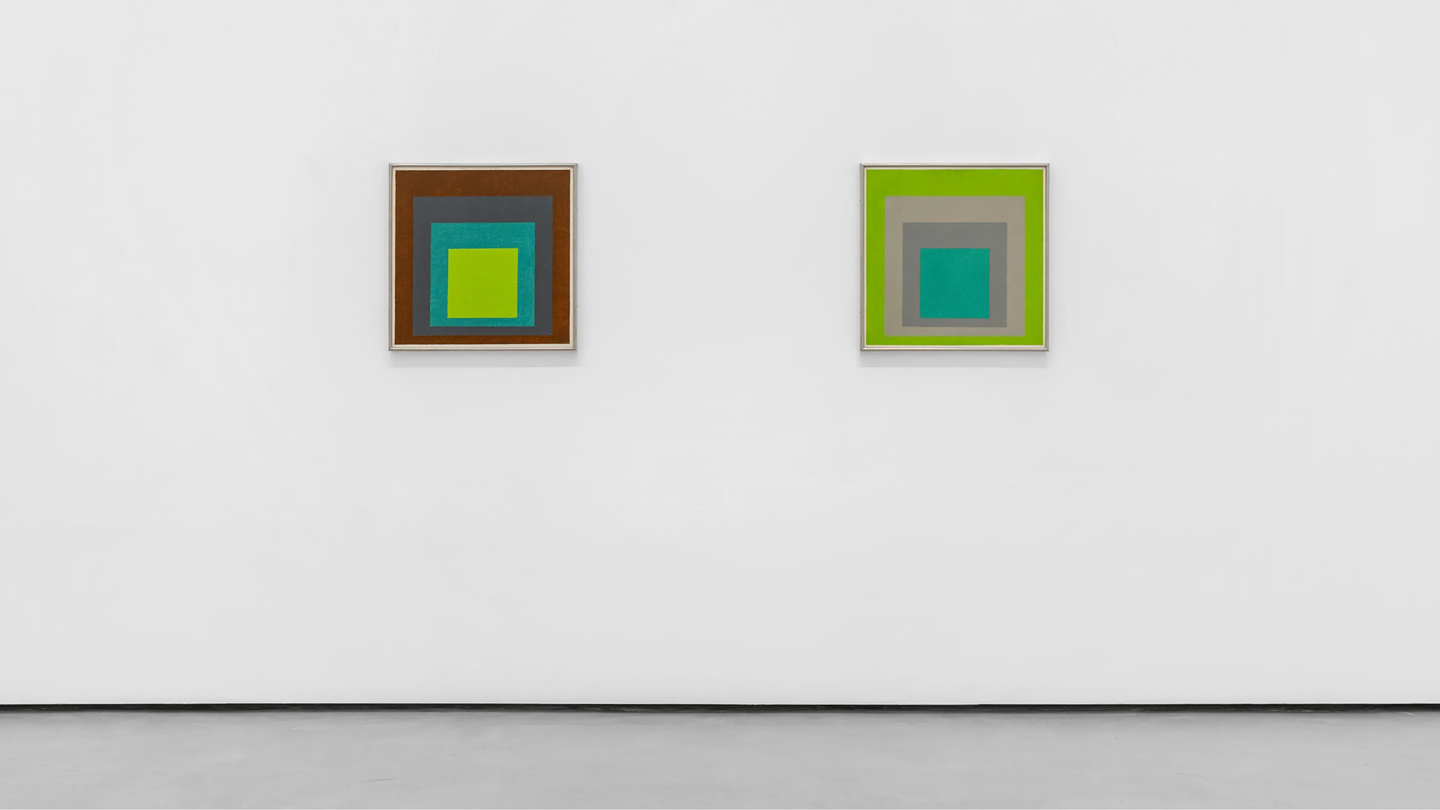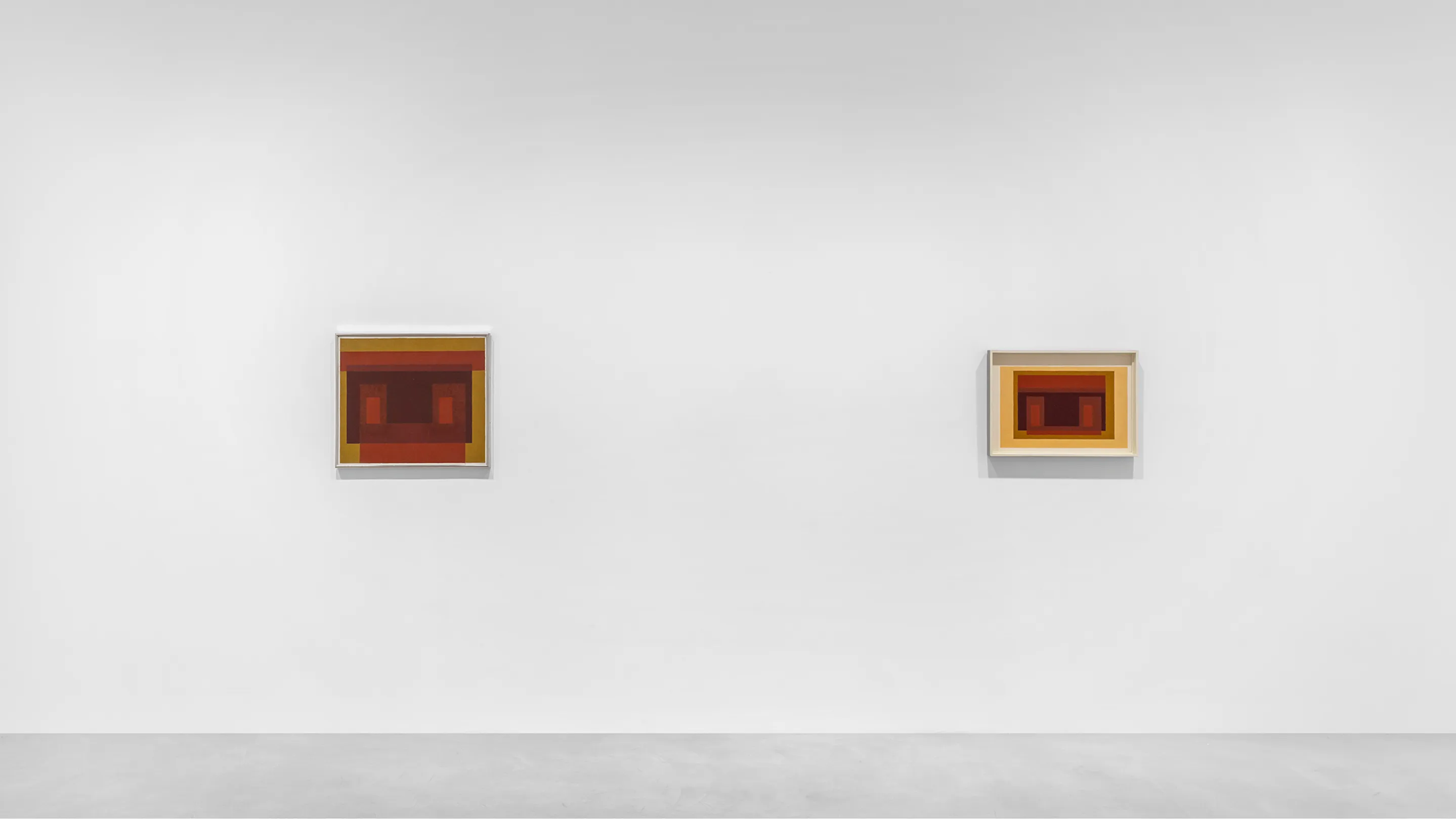 Across the exhibition, the Homage to the Square works do not function as images that resolve through looking. They function as comparison engines. Each painting sustains multiple color states at once, none of which settles into dominance. Difference is present, but it is never ranked.