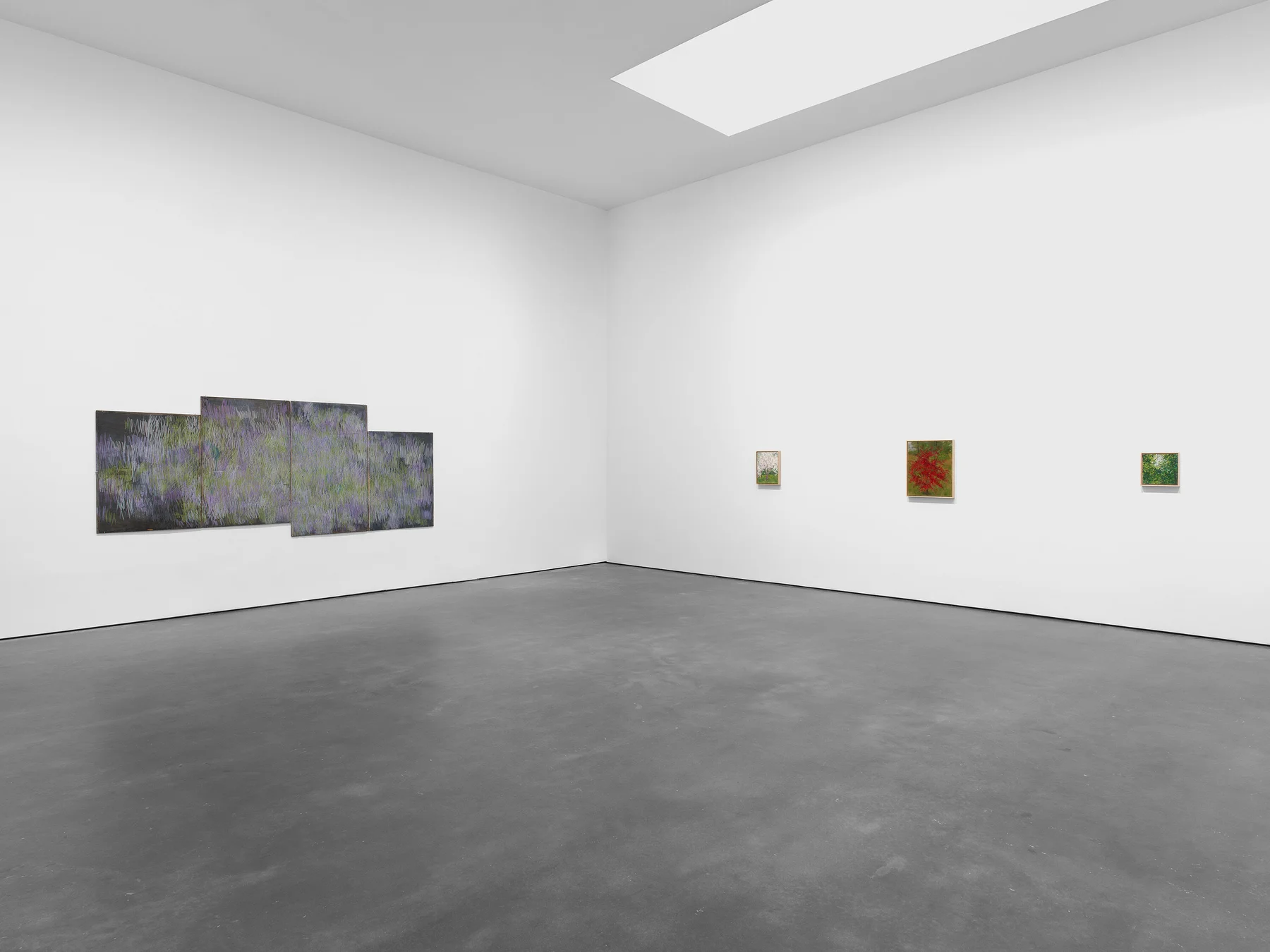 A quieter form of this attention appears in a series of small observational paintings and drawings. Works such as Untitled #6 (May) (1998) and Untitled #9 record seasonal shifts in the landscape around her studio—branches, flowers, or clusters of leaves seen at particular moments in the year. Compared with the steel works, these images feel intimate in scale, yet they operate through the same attentiveness to change.