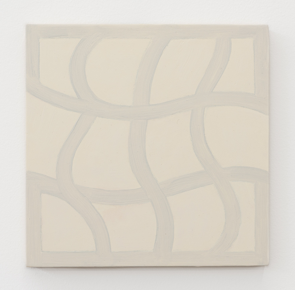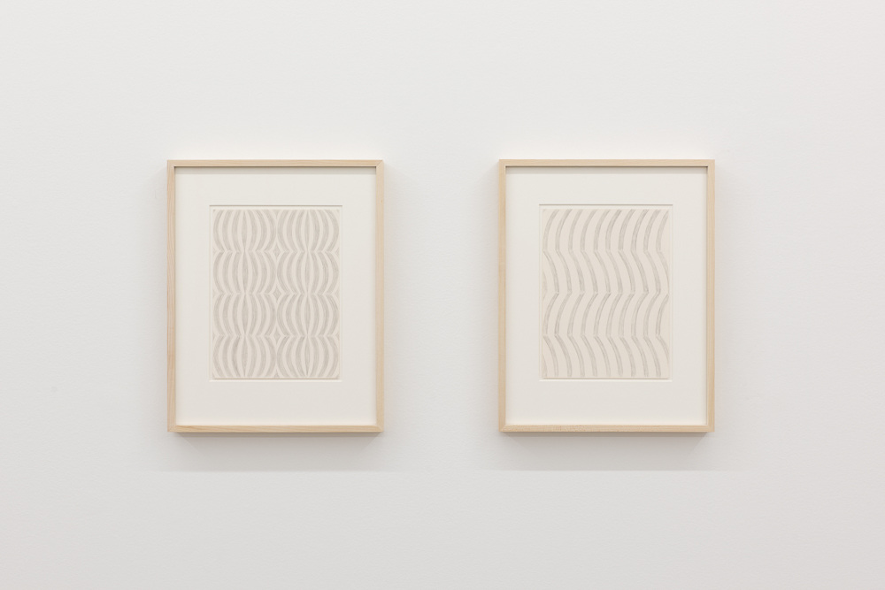 Barely perceptible at first, pale bands cross the panels in Untitled #9570 and Untitled #9571 (2025). The two hang beside one another, nearly indistinguishable. Then the eye adjusts. A spacing tightens. A curve leans. The difference is slight, but it alters the balance.